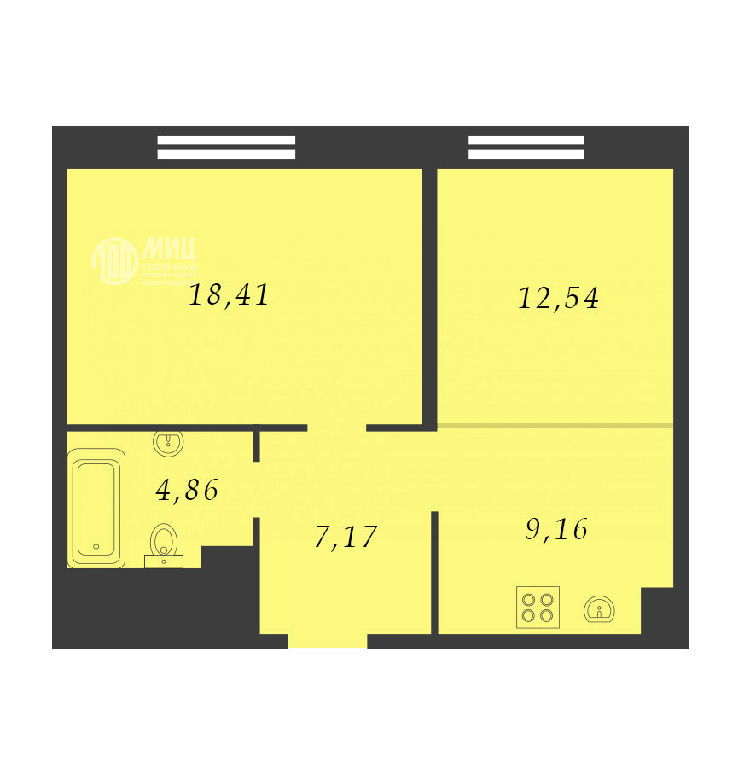 Комнаты: 18.4 12.5 м2