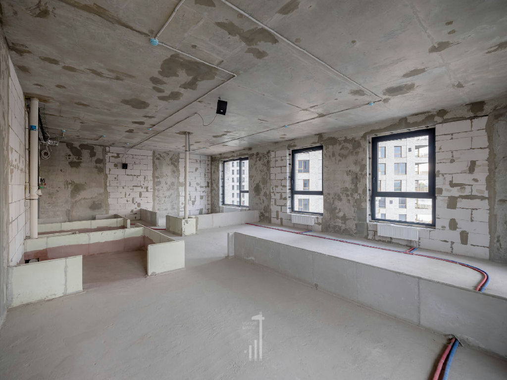 Идеальная прямоугольная форма квартиры и 5 окон, 3 из которых в кухне-гостиной, позволяют спроектировать дополнительную, третью спальню.